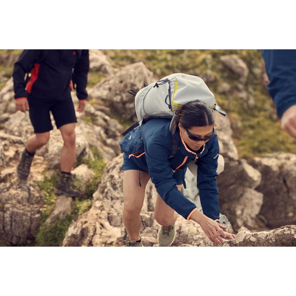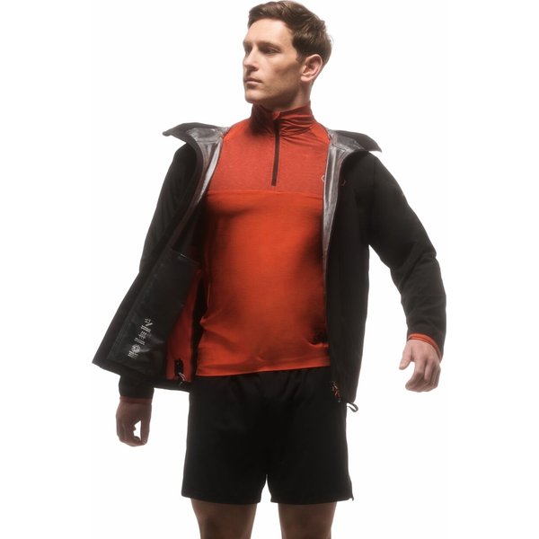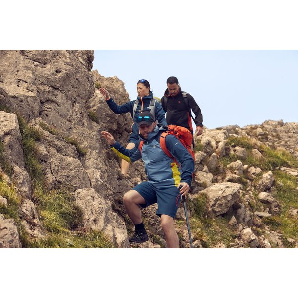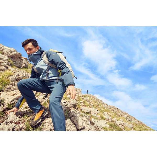 Przegubowa konstrukcja rękawów zapewnia pełną swobodę ruchu, a technologia SeamSmart redukuje ilość szwów dla większego komfortu i mobilności. Dwie techniczne dłuższe dolne kieszenie zapinane na zamek pozwalają bezpiecznie przechowywać drobne przedmioty, a elastyczne mankiety i dół zapewniają idealne dopasowanie. Dodatkowo, kurtka posiada wewnętrzną kieszeń z siatki na smartfona, co ułatwia korzystanie z urządzeń mobilnych podczas aktywności na świeżym powietrzu. Dzięki technologii Ared, ta kurtka zapewnia trwałą wodoodporną ochronę o najwyższym poziomie oddychalności, co sprawia, że jest idealna zarówno podczas intensywnych trekkingów, jak i w codziennym użytkowaniu. Wyróżniającym się elementem tej kurtki jest także zamek błyskawiczny z kanałem przeciwdeszczowym oraz osłoną podbródka, co sprawia, że jest łatwa w obsłudze nawet w trudnych warunkach pogodowych.