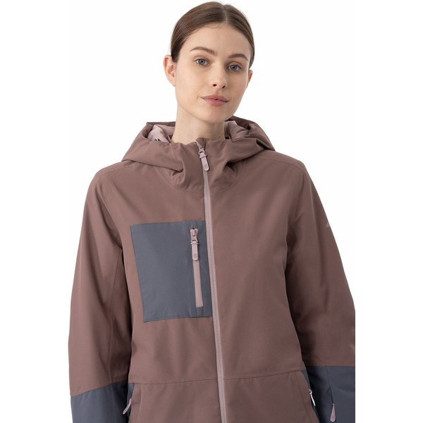Kurtka narciarska damska marki 4F to idealny wybór dla aktywnych kobiet, które cenią sobie komfort i funkcjonalność. Wykonana została z wysokiej jakości materiałów, które zapewniają wysoką ochronę przed wiatrem i deszczem. Kurtka posiada zintegrowany kaptur z regulacją 2D dla większej ochrony przed warunkami atmosferycznymi oraz wentylację, która zapewnia optymalną temperaturę podczas intensywnych treningów. Dodatkowo, kurtka posiada wiele praktycznych kieszeni na drobiazgi, kieszeń typu ski pass na zamek, czy kieszeń na gogle. Dzięki regulacji na dole i mankietom z otworem na kciuk, kurtka dostosowuje się do ciała i zapewnia pełną swobodę ruchów. Odpinany ochraniacz przeciwśnieżny to dodatkowa ochrona podczas jazdy na nartach lub snowboardzie. Kurtka damska 4F to propozycja dla kobiet, które cenią sobie funkcjonalność i styl.