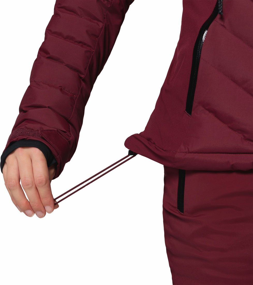 olejną zaletą jest wodoodporność kurtki, która chroni przed wilgocią i śniegiem. Dzięki temu, niezależnie od warunków pogodowych, możesz cieszyć się suchym i komfortowym dniem na stoku. Membrana Omni-Tech jest jednocześnie oddychająca, co zapobiega przegrzewaniu się i zapewnia odpowiednią wentylację. Warto również zwrócić uwagę na przemyślaną konstrukcję kurtki, która została zaprojektowana z myślą o wygodzie i funkcjonalności. Kurtka posiada regulowany kaptur, który można dostosować za pomocą sznurka, a także odpinane futerko, co pozwala na personalizację wyglądu i komfortu. Kaptur jest kompatybilny z kaskiem, co jest niezwykle istotne dla narciarek dbających o bezpieczeństwo. Dodatkowe funkcje, takie jak pas przeciwśnieżny, regulowane mankiety i dół kurtki, zapewniają dodatkową ochronę przed śniegiem i zimnem. Dzięki temu możesz skupić się na swoich wynikach, zamiast martwić się o warunki atmosferyczne. Otwory na kciuki w mankietach zapewniają dodatkowe ciepło i komfort, a wygodny mankiet zapobiega przedostawaniu się śniegu do wnętrza rękawów.