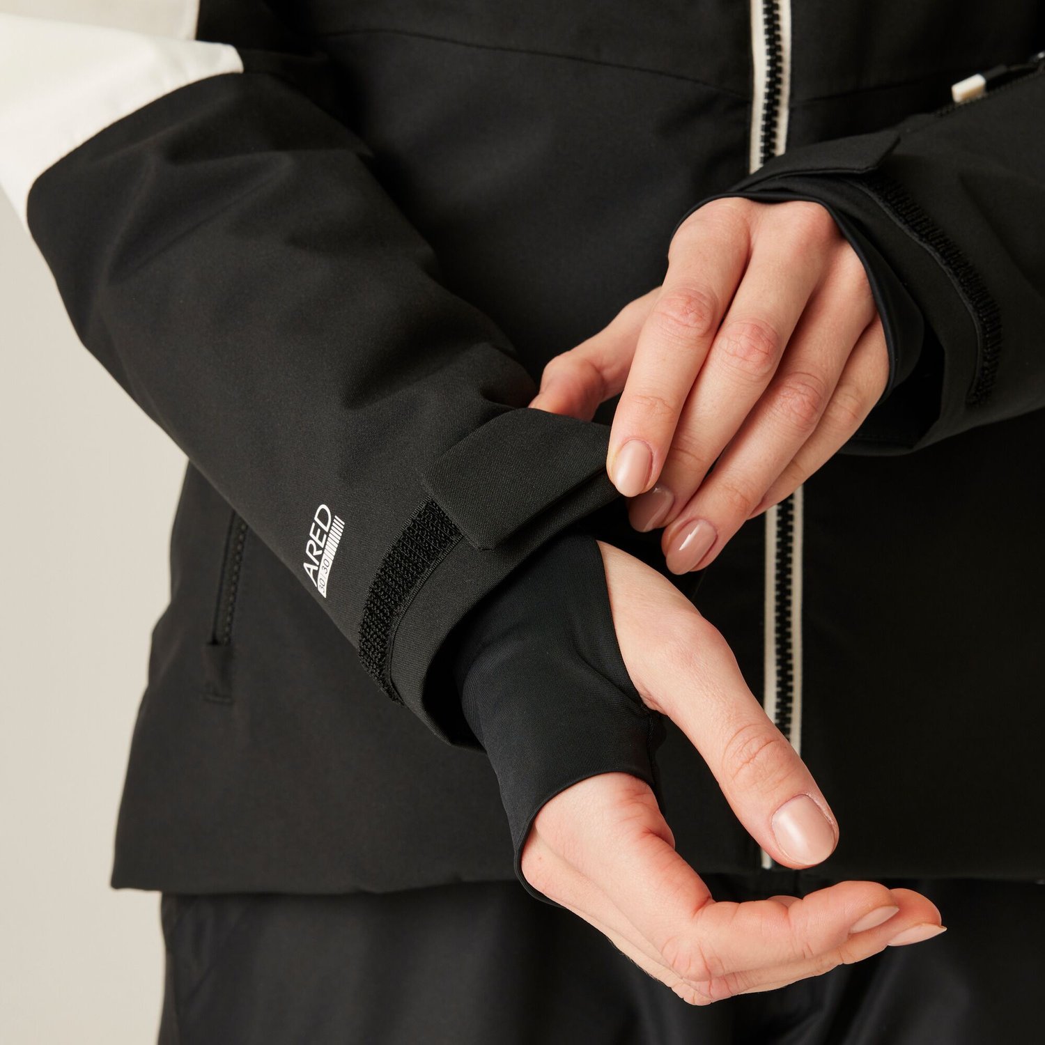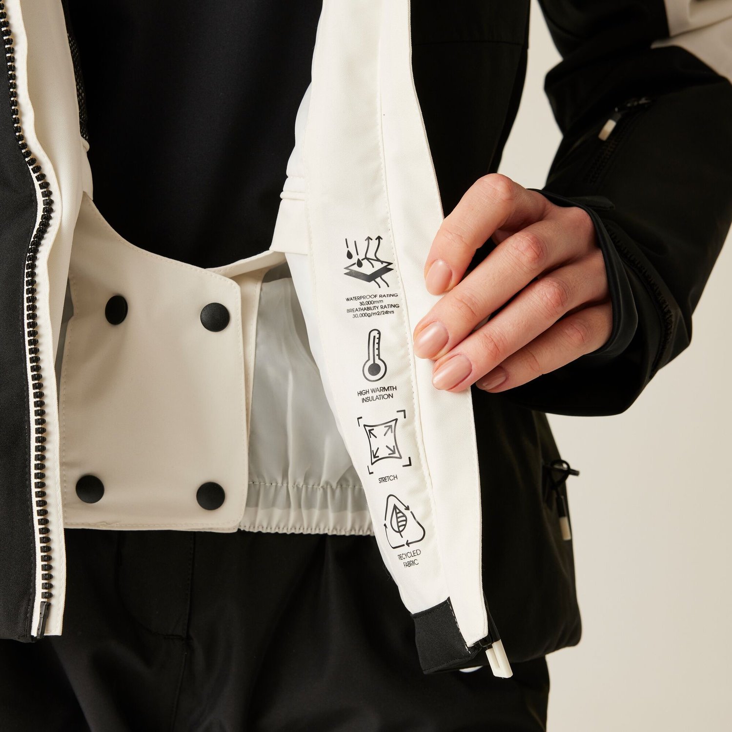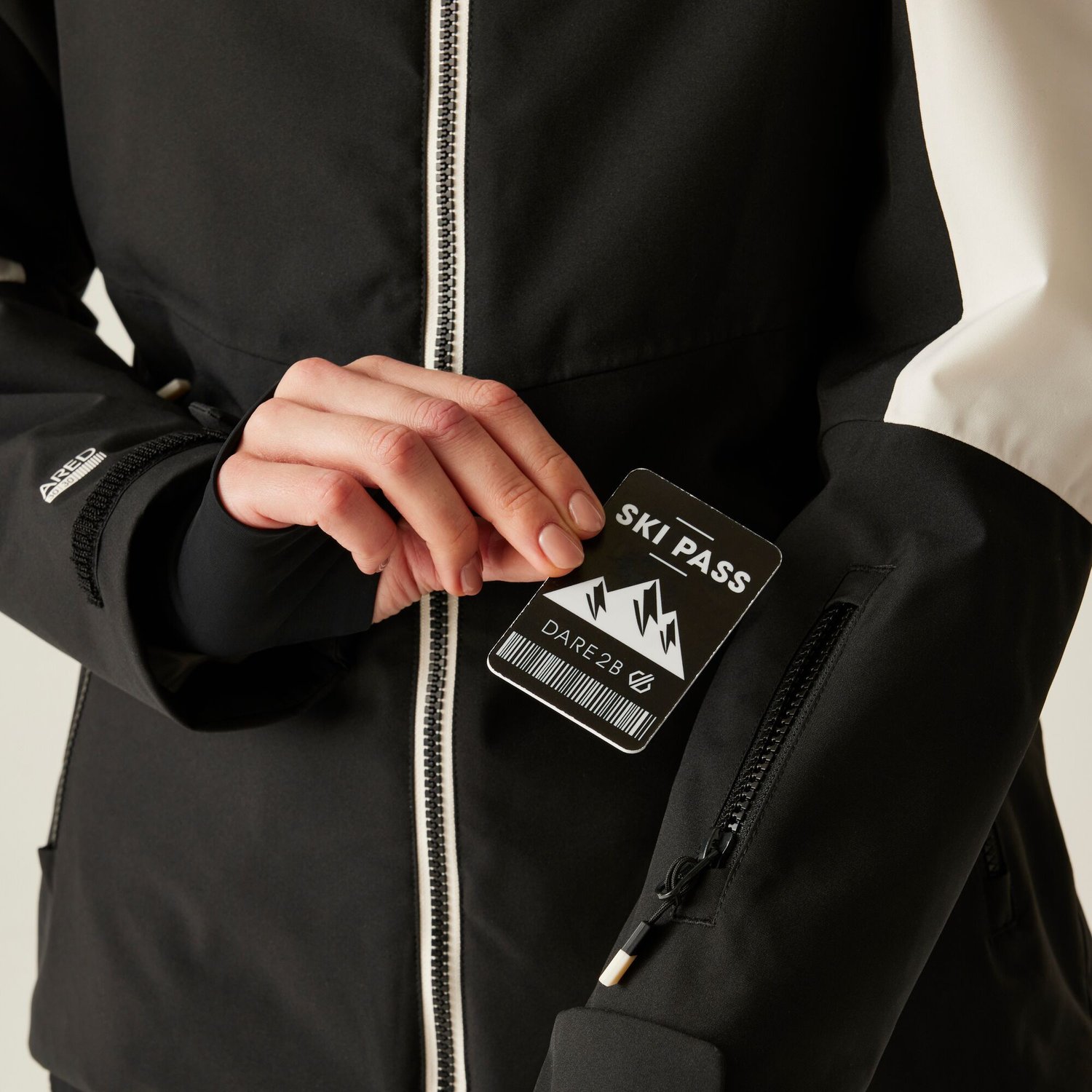 Kurtka Iced Dare2B została wyposażona w kompletne wyposażenie narciarskie, które czyni ją niezwykle praktyczną na stoku. Znajdują się w niej kieszenie zaprojektowane specjalnie z myślą o narciarzach, w tym kieszeń na karnet narciarski oraz odpinany pas śnieżny wykończony żelowym paskiem, który doskonale zapobiega przedostawaniu się śniegu pod kurtkę. Dwie boczne kieszenie zapinane na zamek oraz dodatkowa kieszeń na rękawie zapewniają łatwy dostęp do najważniejszych rzeczy, nawet podczas intensywnego ruchu.