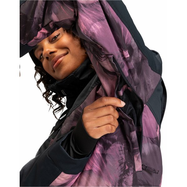 Kurtka narciarska damska Presence Parka Roxy to produkt marki Roxy, stworzony z myślą o kobietach uprawiających narciarstwo. Główną zaletą tej kurtki jest technologia HydroSmart, która chroni, uspokaja i pielęgnuje skórę w trudnych warunkach. Dodatkowo, dzięki technologii 10K DryFlight®, kurtka jest wodoodporna (10 000 mm/10 000 g), a niezawierająca PFC powłoka DWR zapewnia suchość i ochronę przed czynnikami atmosferycznymi. Kurtka jest również doskonale izolowana dzięki technologii WarmFlight® x2 z butelek PET. Kurtka jest wygodna w noszeniu dzięki dopasowanemu fasonowi, regulowanemu kapturowi i pełnemu zamknięciu na zamek błyskawiczny. Posiada również wiele praktycznych kieszeni i system mocowania kurtki do spodni. Dodatkowo, kurtka jest wyposażona w pas śnieżny, wentylację pod pachami, wygodne otwory na kciuki oraz klips na klucze.