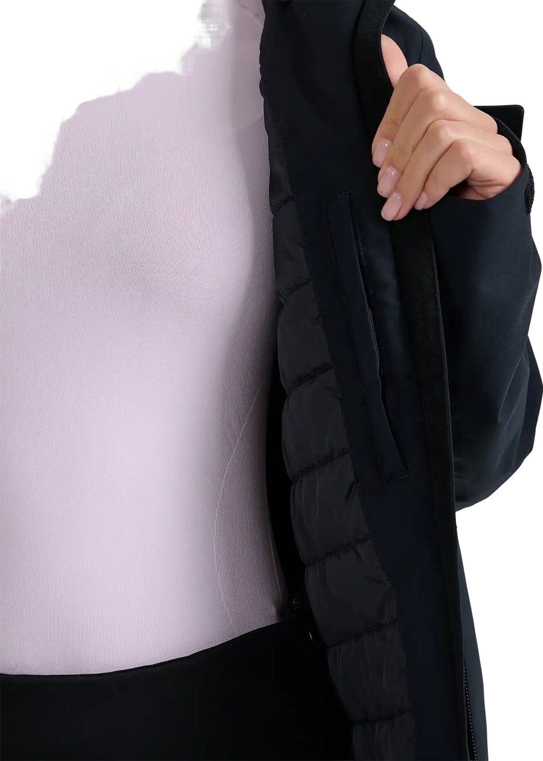 Kurtka została wyposażona w lekką ocieplinę poliestrową, która skutecznie utrzymuje ciepło bez zbędnego obciążenia. Jest to szczególnie ważne podczas długich dni spędzonych na stoku, gdzie komfort termiczny odgrywa kluczową rolę. Dzięki temu rozwiązaniu, użytkowniczki mogą cieszyć się ciepłem bez uczucia ciężkości, co zwiększa ich komfort i zadowolenie z użytkowania. Funkcjonalność kurtki wzbogacają praktyczne kieszenie na zamek. Dwie boczne kieszenie umożliwiają bezpieczne przechowywanie niezbędnych przedmiotów, takich jak telefon czy klucze, a dedykowana kieszeń na ski pass ułatwia dostęp do karnetu. Wewnątrz kurtki znajdują się również kieszenie na gogle oraz drobiazgi, co znacznie zwiększa jej funkcjonalność i praktyczność.