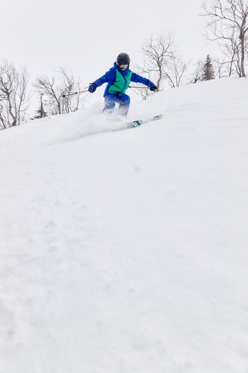 Praktyczne detale, takie jak zamek błyskawiczny z przodu, dwie duże kieszenie z klapkami oraz dodatkowe kieszenie na piersi z zamkami, umożliwiają przechowywanie niezbędnych drobiazgów, takich jak przekąski, klucze czy mapy tras narciarskich. Wewnętrzne kieszenie na piersi to dodatkowe miejsce na przechowywanie cennych przedmiotów blisko ciała. Kieszeń na karnet narciarski to natomiast praktyczne rozwiązanie dla młodych narciarzy, którzy mogą szybko i wygodnie korzystać z wyciągów