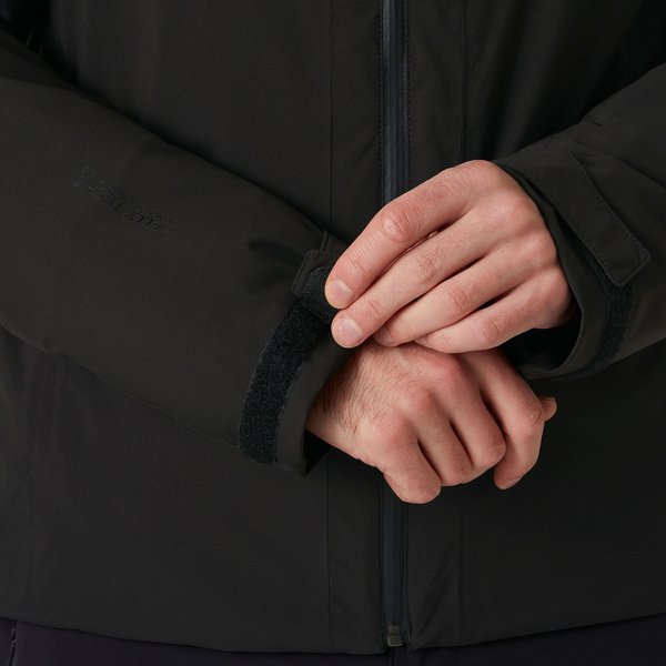 Rękawy o przegubowej konstrukcji zapewniają optymalną mobilność, co jest istotne podczas dynamicznych zjazdów. Mankiety z regulacją na rzep oraz możliwość regulacji kaptura ułatwiają idealne dopasowanie kurtki do ciała, tym samym zwiększając komfort użytkowania. Wewnętrzna podszewka oraz szczotkowana trykotowa osłona podbródka dodają miękkości i wygody noszenia, eliminując ryzyko otarć. Kurtka posiada prosty krój z długością sięgającą do bioder, co sprawia, że jest nie tylko praktyczna, ale także stylowa. Logo Helly Hansen na piersi dodaje jej nowoczesnego charakteru.