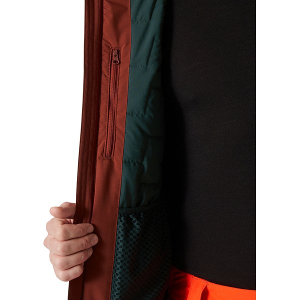 Rękawy o przegubowej konstrukcji zapewniają optymalną mobilność, co jest istotne podczas dynamicznych zjazdów. Mankiety z regulacją na rzep oraz możliwość regulacji kaptura ułatwiają idealne dopasowanie kurtki do ciała, tym samym zwiększając komfort użytkowania. Wewnętrzna podszewka oraz szczotkowana trykotowa osłona podbródka dodają miękkości i wygody noszenia, eliminując ryzyko otarć. Kurtka posiada prosty krój z długością sięgającą do bioder, co sprawia, że jest nie tylko praktyczna, ale także stylowa. Logo Helly Hansen na piersi dodaje jej nowoczesnego charakteru.