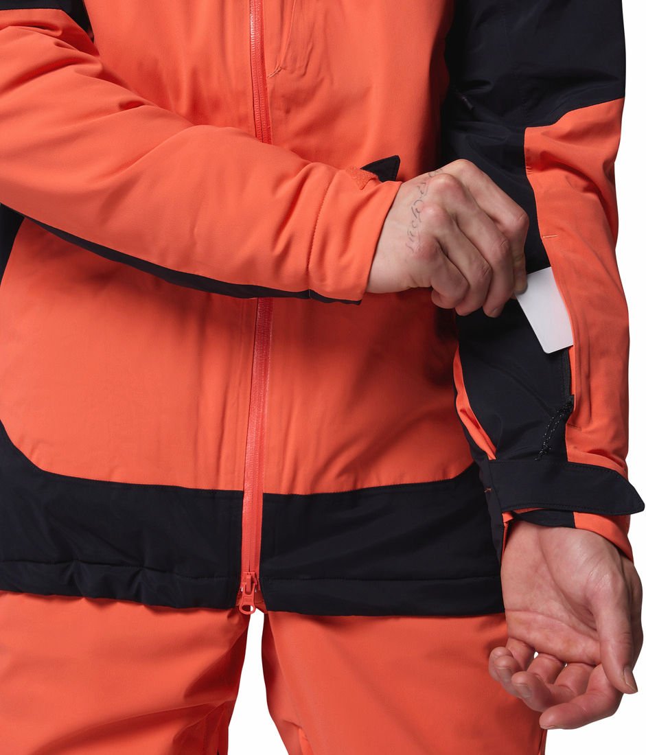 Kurtka Cirque Bowl to także przemyślany projekt pod względem praktyczności. Liczne kieszenie, w tym dedykowane miejsce na karnet narciarski i gogle, a także zapinane na zamek kieszenie na piersi i dłoniach, pozwalają na bezpieczne przechowywanie wszelkich niezbędnych przedmiotów. Wewnętrzna kieszeń bezpieczeństwa to idealne miejsce na wartościowe rzeczy, które zawsze chcesz mieć przy sobie. Nie sposób również nie wspomnieć o kapturze kompatybilnym z kaskiem, który posiada regulację obwodową, co gwarantuje doskonałą ochronę przed niekorzystnymi warunkami pogodowymi, nie ograniczając przy tym widoczności. Otwory wentylacyjne pod pachami dodatkowo zwiększają przepływ powietrza, co jest niezwykle ważne podczas intensywnego wysiłku.