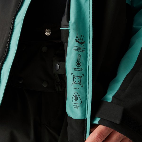 Kurtka Halfpipe III jest nie tylko odporna na wodę, ale także chroni przed wiatrem, co jest kluczowe dla utrzymania ciepła w chłodne, wietrzne dni. Wiatroszczelność materiału gwarantuje, że użytkownik nie odczuje nieprzyjemnego chłodu, nawet przy silnych podmuchach wiatru. Dodając do tego bardzo ciepłe wypełnienie oraz polarową podszewkę na kołnierzu, kurtka oferuje wyjątkowy komfort cieplny. Wykonana w 100% z poliestru pochodzącego z recyklingu, kurtka wspiera działania na rzecz ochrony środowiska, co jest istotnym aspektem dla świadomych ekologicznie konsumentów. Produkt nie zawiera szkodliwych substancji takich jak PFC, PFOA, PFOS, co czyni go bezpiecznym zarówno dla użytkownika, jak i dla planety.