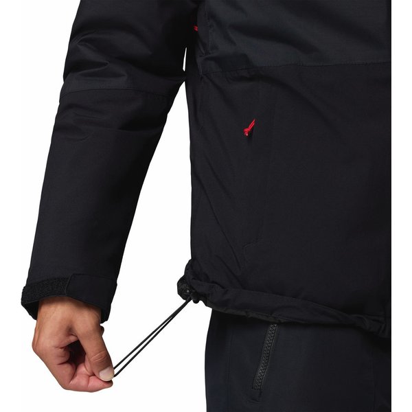 Kurtka Iceberg Point II Columbia oferuje również szereg praktycznych dodatków, które zwiększają wygodę użytkowania. Regulowany kaptur i dolny obwód kurtki pozwalają na idealne dopasowanie do sylwetki, co jest niezwykle ważne podczas intensywnej aktywności. Mankiety zapinane na rzepy zabezpieczają przed wnikaniem chłodnego powietrza, a otwory wentylacyjne pod pachami umożliwiają dodatkową regulację temperatury wewnątrz kurtki. Dla osób ceniących funkcjonalność, kurtka została wyposażona w liczne kieszenie, w tym kieszeń na skipass, kieszeń wewnętrzną oraz dwie kieszenie boczne zapinane na zamek. Te praktyczne schowki pozwalają na bezpieczne przechowywanie niezbędnych drobiazgów, takich jak klucze, telefon czy portfel, bez obawy o ich zgubienie. Kurtka charakteryzuje się również solidnym wykonaniem, co podkreślają wzmacniane szwy oraz materiał odporny na uszkodzenia. Wysoki kołnierz oraz ochrona podbródka przy zamku dodatkowo zwiększają komfort użytkowania, chroniąc przed chłodnym wiatrem. Logo producenta na piersi dodaje jej modnego wyglądu.
