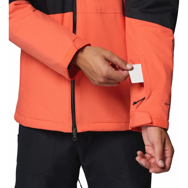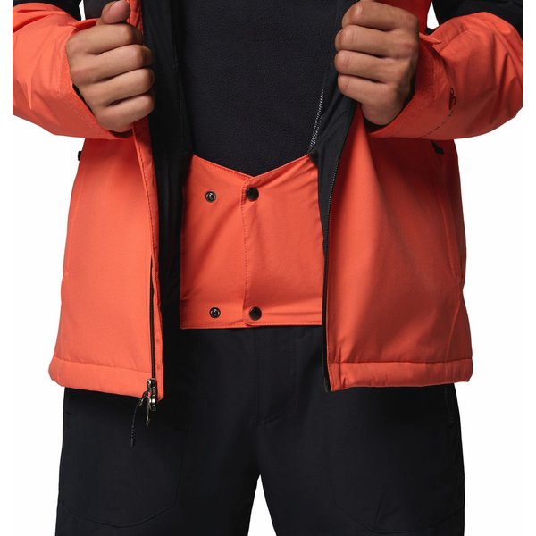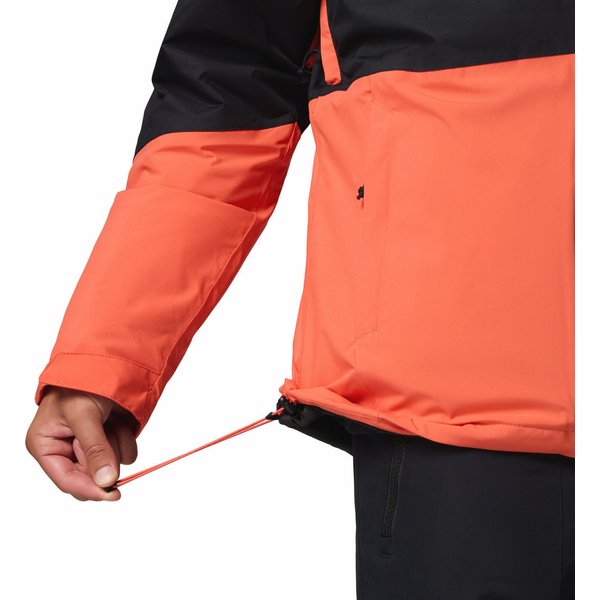 Kurtka Iceberg Point II Columbia oferuje również szereg praktycznych dodatków, które zwiększają wygodę użytkowania. Regulowany kaptur i dolny obwód kurtki pozwalają na idealne dopasowanie do sylwetki, co jest niezwykle ważne podczas intensywnej aktywności. Mankiety zapinane na rzepy zabezpieczają przed wnikaniem chłodnego powietrza, a otwory wentylacyjne pod pachami umożliwiają dodatkową regulację temperatury wewnątrz kurtki. Dla osób ceniących funkcjonalność, kurtka została wyposażona w liczne kieszenie, w tym kieszeń na skipass, kieszeń wewnętrzną oraz dwie kieszenie boczne zapinane na zamek. Te praktyczne schowki pozwalają na bezpieczne przechowywanie niezbędnych drobiazgów, takich jak klucze, telefon czy portfel, bez obawy o ich zgubienie. Kurtka charakteryzuje się również solidnym wykonaniem, co podkreślają wzmacniane szwy oraz materiał odporny na uszkodzenia. Wysoki kołnierz oraz ochrona podbródka przy zamku dodatkowo zwiększają komfort użytkowania, chroniąc przed chłodnym wiatrem. Logo producenta na piersi dodaje jej modnego wyglądu.