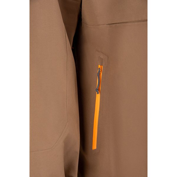 Wykonana z poliestru z recyklingu, co sprawia, że jest przyjazna dla środowiska. Materiał pokryty laminatem FN Dry ™ 10K zapewnia wodoodporność i oddychalność na wysokim poziomie. Tkanina posiada hydrofobowe wykończenie DWR, które sprawia, że woda spływa po jej powierzchni. Takie rozwiązanie zapewni dodatkową ochronę przed śniegiem i deszczem. Kurtka jest zapinana na wodoodporny zamek błyskawiczny. Regulowany kaptur jest kompatybilny z kaskiem narciarskim. Wysoki kołnierz zapewni Ci dodatkową ochronę przed nieprzyjemnym wiatrem. W pełni klejone szwy zadbają o nieprzemakalność.