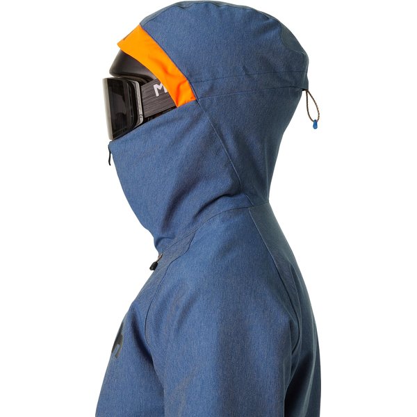 Kurtka ma zamki błyskawiczne na dole, dzięki czemu można uwolnić ciepło, gdy ciężko jeździsz na nartach. Została wyprodukowana z systemem modułowym Fusion, który łączy kurtkę ze spodniami narciarskimi, eliminując unoszenie się śniegu, gdy zagłębisz się w świeży puch. Dodatkowe funkcje narciarskie obejmują kaptur kompatybilny z kaskiem, zatrzaskiwany fartuch przeciwpoślizgowy, kieszeń na gogle z chusteczką do gogli i kieszeń na karnet.
