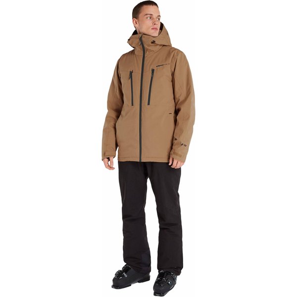 Kurtka posiada w pełni podklejone szwy oraz wodoodporne zamki, abyś zawsze mógł mieć pewność, że nie grozi Ci przemoczenie podczas beztroskiej jazdy na nartach. Zintegrowany kaptur został zszyty z wysokim kołnierzem, zabezpieczającym przed wiatrem i opadami. Kurtka posiada dopasowany krój o standardowej długości. Jej rękawy możesz wyregulować za pomocą zapięć na rzepy. Warto także wykorzystać elastyczne mankiety z Lycry, w których są otwory na kciuki.
