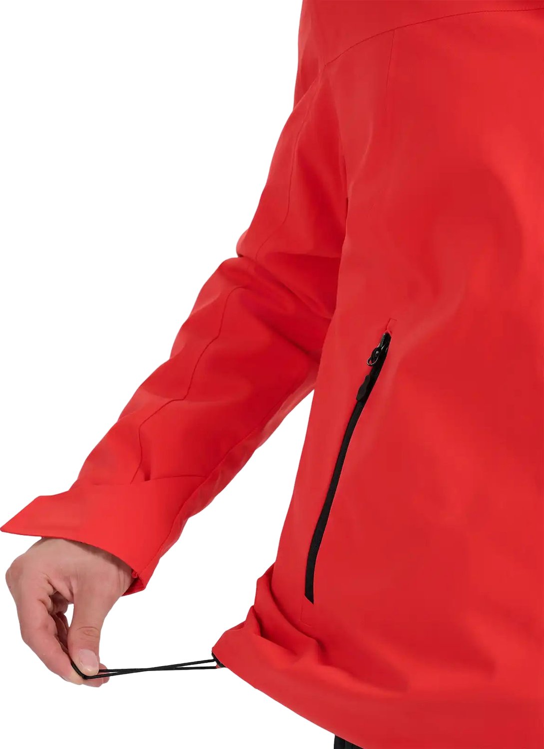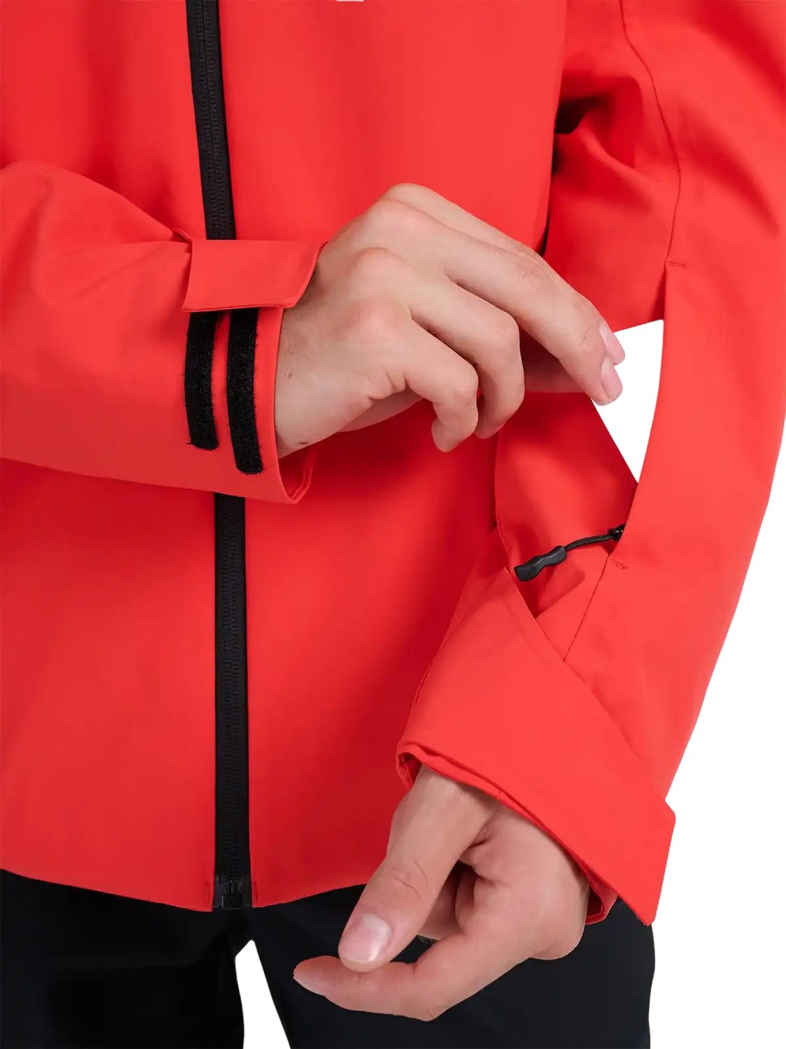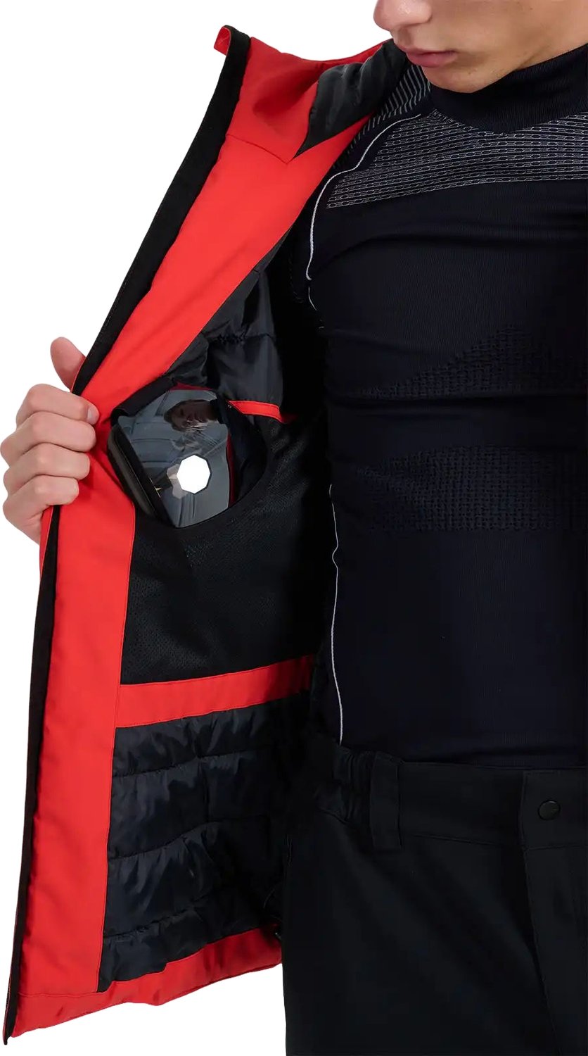 Kurtka oferuje również szereg funkcjonalnych kieszeni. Dwie kieszenie boczne na zamek to miejsce idealne na drobiazgi, które warto mieć pod ręką. Kieszeń na ski pass pozwala na szybki dostęp do karnetu, co ułatwia korzystanie z wyciągów narciarskich. Wewnętrzna kieszeń na zamek to bezpieczne miejsce na telefon czy dokumenty, a kieszeń na gogle zapewnia wygodne przechowywanie akcesoriów narciarskich. Mankiety z rzepami umożliwiają regulację, co pozwala na jeszcze lepsze dopasowanie do indywidualnych potrzeb, a regulowany dół ze stoperami zapewnia dodatkową ochronę przed zimnem. Elementy odblaskowe z kolei zwiększają widoczność, co jest ważne w warunkach słabego oświetlenia.