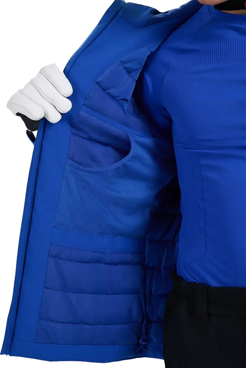 Kurtka została wyposażona w lekką ocieplinę poliestrową, która zapewnia ciepło bez zbędnego obciążania ciała. To rozwiązanie idealne dla tych, którzy cenią sobie swobodę ruchów, jednocześnie nie rezygnując z odpowiedniego komfortu cieplnego. Dodatkowo pikowana podszewka wzmacnia efekt izolacji termicznej, co jest istotne podczas niskich temperatur. Zintegrowany kaptur to kolejny element, który zapewnia ochronę przed śniegiem i wiatrem. Jest to szczególnie przydatne w warunkach zmiennej pogody, kiedy to zaskakujące podmuchy wiatru mogą utrudnić narciarską przygodę. Jednokierunkowy zamek główny umożliwia łatwe i szybkie zapięcie, co jest niezwykle praktyczne podczas dynamicznych zjazdów.