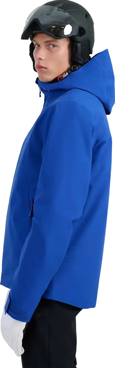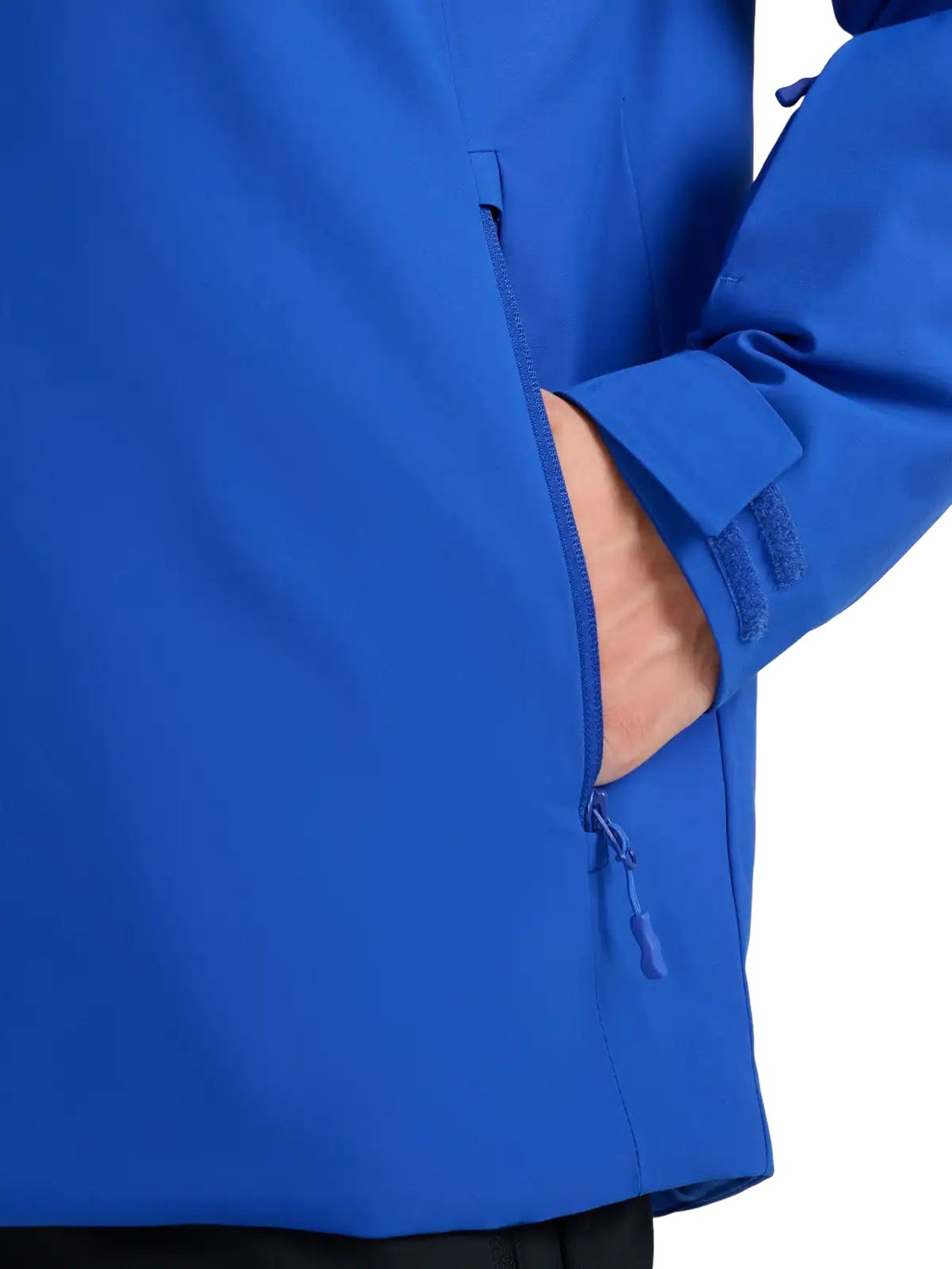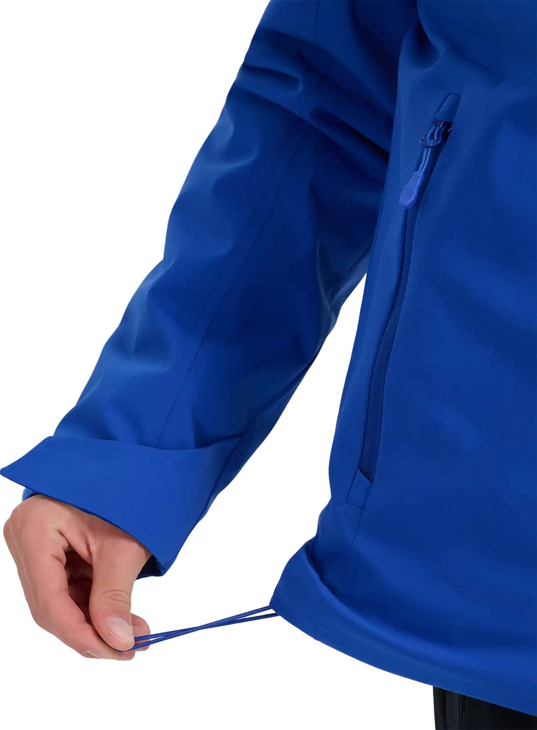 Kurtka oferuje również szereg funkcjonalnych kieszeni. Dwie kieszenie boczne na zamek to miejsce idealne na drobiazgi, które warto mieć pod ręką. Kieszeń na ski pass pozwala na szybki dostęp do karnetu, co ułatwia korzystanie z wyciągów narciarskich. Wewnętrzna kieszeń na zamek to bezpieczne miejsce na telefon czy dokumenty, a kieszeń na gogle zapewnia wygodne przechowywanie akcesoriów narciarskich. Mankiety z rzepami umożliwiają regulację, co pozwala na jeszcze lepsze dopasowanie do indywidualnych potrzeb, a regulowany dół ze stoperami zapewnia dodatkową ochronę przed zimnem. Elementy odblaskowe z kolei zwiększają widoczność, co jest ważne w warunkach słabego oświetlenia.