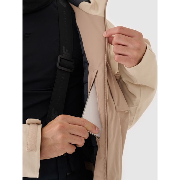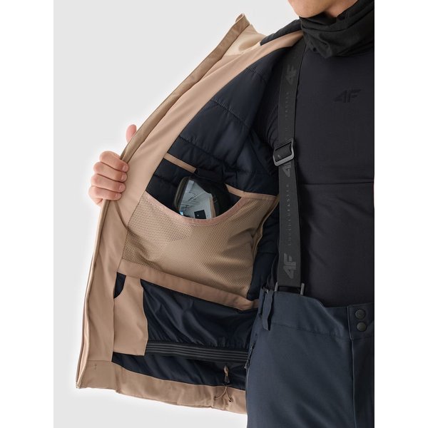 Męska kurtka narciarska 4F to idealne rozwiązanie dla osób ceniących komfort i ochronę w zimowych warunkach. Dzięki membranie NeoDry, jest odporna na umiarkowane opady, a jednocześnie skutecznie odprowadza wilgoć podczas aktywności. Lekka ocieplina poliestrowa zapewnia ciepło bez zbędnego obciążenia, a hydrofobowa powłoka zapobiega wchłanianiu wody. Klejone szwy i wodoszczelny zamek chronią przed przenikaniem wody, a regulowany kaptur i wysoki kołnierz dodatkowo zabezpieczają przed chłodem. Praktyczne kieszenie, w tym na piersi i rękawie, umożliwiają przechowywanie niezbędnych przedmiotów, a regulowane mankiety i pas śnieżny zapewniają doskonałe dopasowanie.