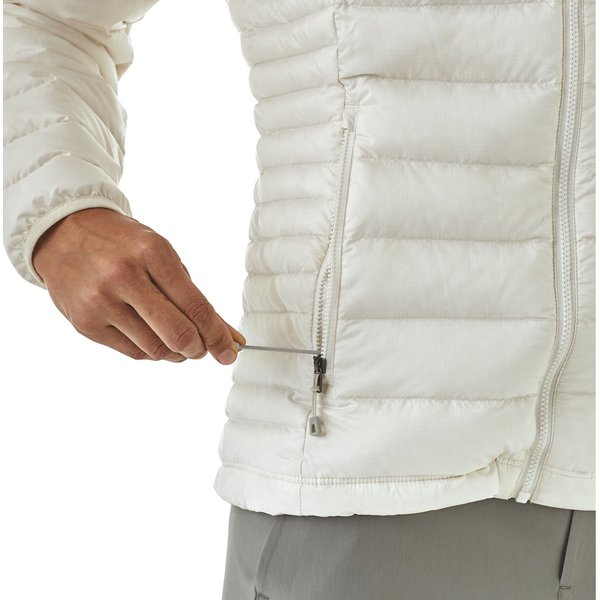 Zastosowany materiał pochodzi w całości z recyklingu oraz jest wykończony technologią DWR, która zapobiega przedostawaniu się wody i wilgoci do Twojego ciała. Całość została wypełniana wysokiej jakości puchem gęsim o sprężystości 800 uncji, dzięki czemu kurtka się bardzo lekka, ponieważ waży zaledwie 346g oraz zapewni Ci maksymalne ciepło! Ogromny komfortem jest zastosowanie 2 bocznych kieszeni zapinanych na zamki oraz możliwość regulacji obwodu za pomocą ściągacza ukrytego w kieszeniach. Dzięki temu możesz idealnie dopasować kurtkę pod swoja figurę tak, by podkreślała wszystkie najważniejsze atuty. Oprócz tego model możesz zmieścić dosłownie wszędzie! Dzięki wysokiej kompresji możesz zwinąć kurtkę do tego stopnia, by zmieścić ją w jej własnej kieszeni zapinanej na zamek, która staje się w tym momencie małym woreczkiem.