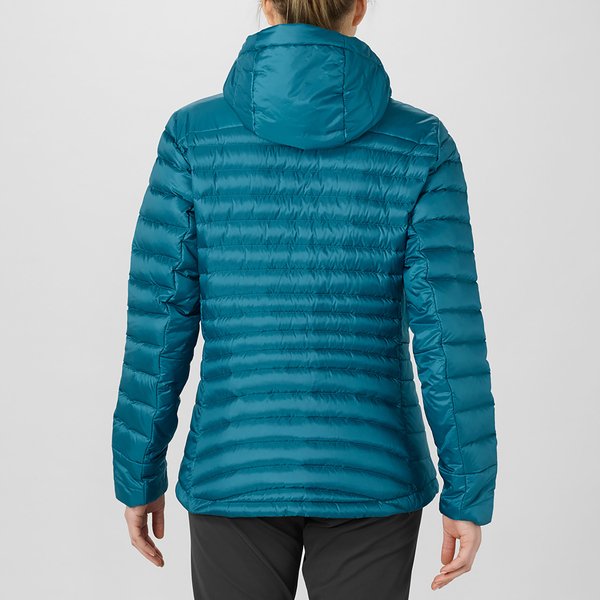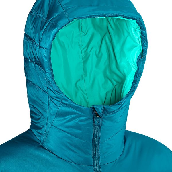 Haloes Down Hoodie wykorzystuje dwa rodzaje izolacji: puch kaczy o sprężystości 700 cuin zapewniający niską wagę oraz znakomite parametry cieplne oraz syntetyczne wypełnienie umieszczone w miejscach najbardziej potliwych, takich jak ramiona czy obszary pod pachami. Jest to tzw. konstrukcja Smart Skin™ bazująca na mapie ciała. Dwa rodzaje izolacji sprawiają, że zyskujesz najlepsze aspekty dwóch różnych rozwiązań: sprężystość zapewnianą przez puch i mniejszą objętość oraz skuteczne odprowadzanie wilgoci, za które odpowiada materiał syntetyczny.