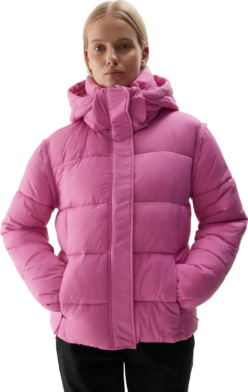 Kurtka puchowa damska z odpinanymi rękawami TDJAF470 2w1 4F