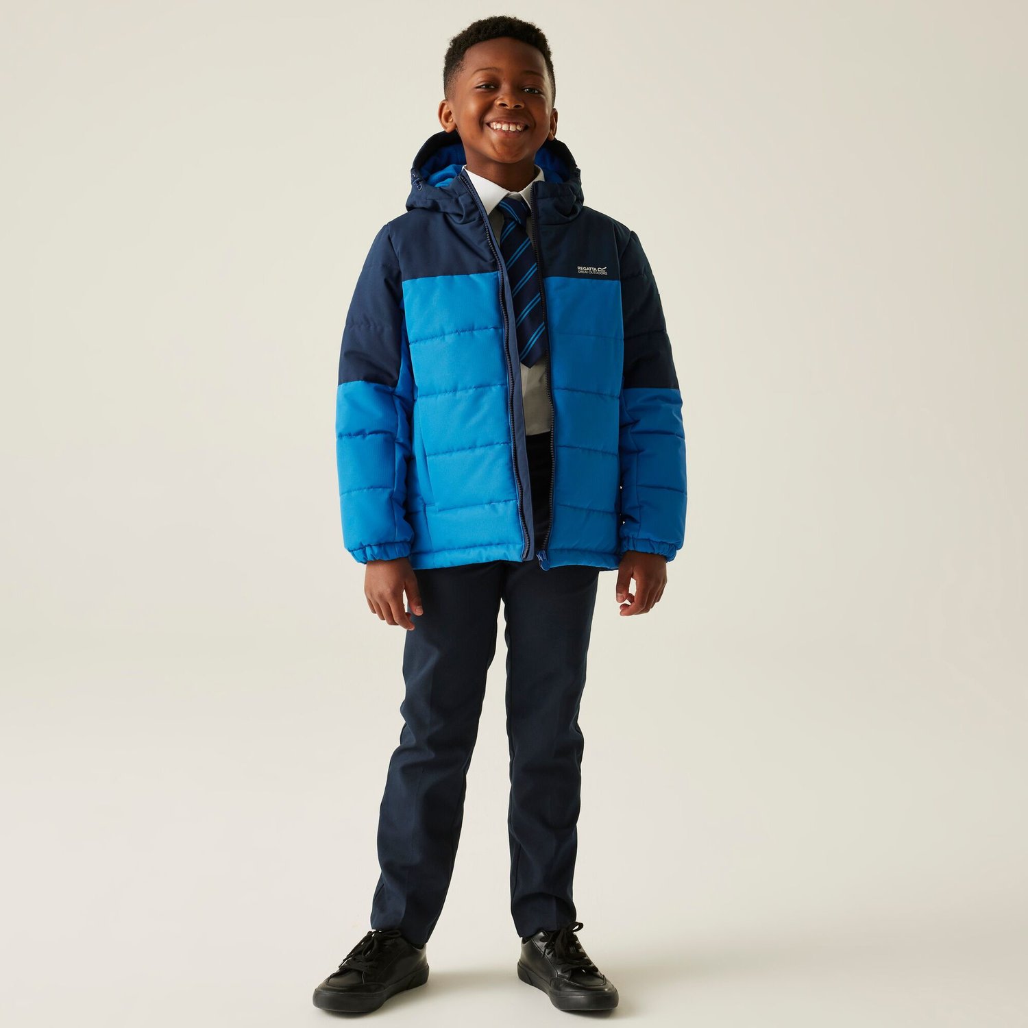 Kurtka puchowa juniorska Lofthouse Regatta to doskonały wybór dla dzieci, które potrzebują komfortu i ochrony w chłodne dni. Wykonana z trwałego, hydrofobowego poliestru, zapewnia ochronę przed wilgocią, a wypełnienie Warmloft z recyklingu gwarantuje ciepło nawet w najzimniejsze poranki. Dzięki zintegrowanemu kapturowi z elastycznym ściągaczem oraz odblaskowym detalom, kurtka oferuje bezpieczeństwo i wygodę. Dwukieszeniowy design z zamkami błyskawicznymi i elastycznymi mankietami dodaje funkcjonalności, podczas gdy pikowana struktura i prosty krój nadają stylu. To idealna kurtka na codzienne wyjścia i zimowe przygody.