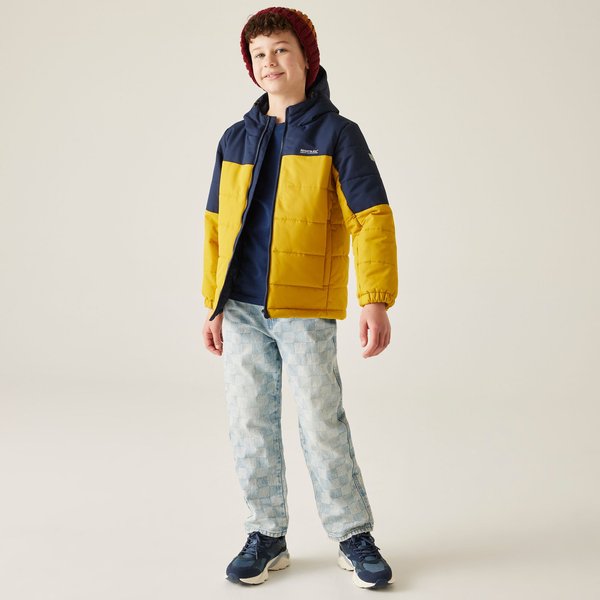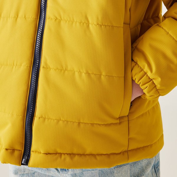 Kurtka puchowa juniorska Lofthouse Regatta to doskonały wybór dla dzieci, które potrzebują komfortu i ochrony w chłodne dni. Wykonana z trwałego, hydrofobowego poliestru, zapewnia ochronę przed wilgocią, a wypełnienie Warmloft z recyklingu gwarantuje ciepło nawet w najzimniejsze poranki. Dzięki zintegrowanemu kapturowi z elastycznym ściągaczem oraz odblaskowym detalom, kurtka oferuje bezpieczeństwo i wygodę. Dwukieszeniowy design z zamkami błyskawicznymi i elastycznymi mankietami dodaje funkcjonalności, podczas gdy pikowana struktura i prosty krój nadają stylu. To idealna kurtka na codzienne wyjścia i zimowe przygody.