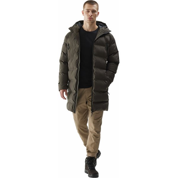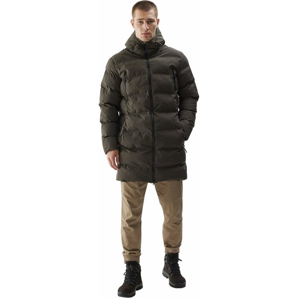 Ta kurtka puchowa męska jest wykonana z wysokiej jakości materiałów, w tym poliestru i syntetycznego puchu, co zapewnia wyjątkową izolację termiczną i ochronę przed zimnem. Zintegrowany kaptur z regulacją 2D zapewnia dodatkowe ciepło i ochronę przed wiatrem. Kurtka ma również wiele praktycznych kieszeni, takich jak dwie kieszenie boczne i dwie kieszenie na piersi na zamek oraz kieszeń wewnętrzna na zamek. Kurtka posiada zamek na całej długości z osłoną podbródka oraz odblaskowe elementy, które zapewniają bezpieczeństwo i zwiększają Twoją widoczność po zmroku. Ten produkt jest idealny dla każdego, kto szuka wygodnej i funkcjonalnej kurtki zimowej.