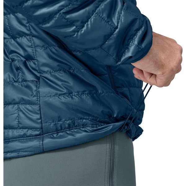 Pikowana struktura z poziomymi liniami nie tylko stabilizuje izolację, ale także nadaje kurtce nowoczesny wygląd. Zamek błyskawiczny na całej długości z wewnętrzną klapą przeciwsztormową oraz garażem na zamek pod brodą zapewnia dodatkowy komfort, minimalizując ryzyko podrażnień skóry. Kieszenie w kurtce Nano Puff Hoody zostały przemyślane pod kątem funkcjonalności. Dwie zapinane na zamek kieszenie boczne są idealne do ogrzewania dłoni, a dodatkowa wewnętrzna kieszeń na piersi, również zapinana na zamek, może służyć do spakowania kurtki. Kaptur zaprojektowany pod kask jest lekki i prosty, co sprawia, że kurtka nadaje się doskonale do aktywności takich jak wspinaczka czy trekking. Elastyczne mankiety oraz regulowany dół kurtki ze ściągaczem dodatkowo zwiększają komfort noszenia, zapewniając idealne dopasowanie i ochronę przed zimnem.