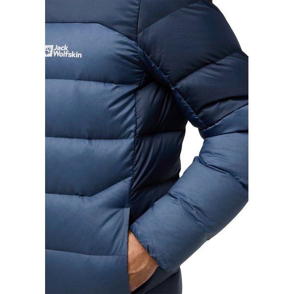 Kurtka puchowa męska Nebelhorn Down Hoody od Jack Wolfskin to niezawodne rozwiązanie na zimowe dni, łączące w sobie funkcjonalność, komfort i troskę o środowisko.