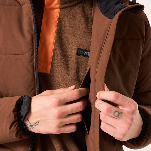 Kurtka męska Tahoe Puffy Oakley to doskonały wybór na chłodniejsze dni. Wykonana z wysokiej jakości materiałów, zewnętrzna warstwa tej kurtki została wykonana w 100% z nylonu pochodzącego z recyklingu. Izolacja syntetyczna zapewnia optymalne ciepło, chroniąc przed zimnem. Powłoka DWR sprawia, że zewnętrzna tkanina nie wchłania tak szybko wilgoci, co jest istotne podczas zmiennej pogody.