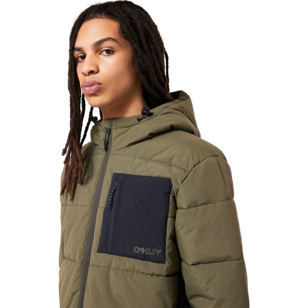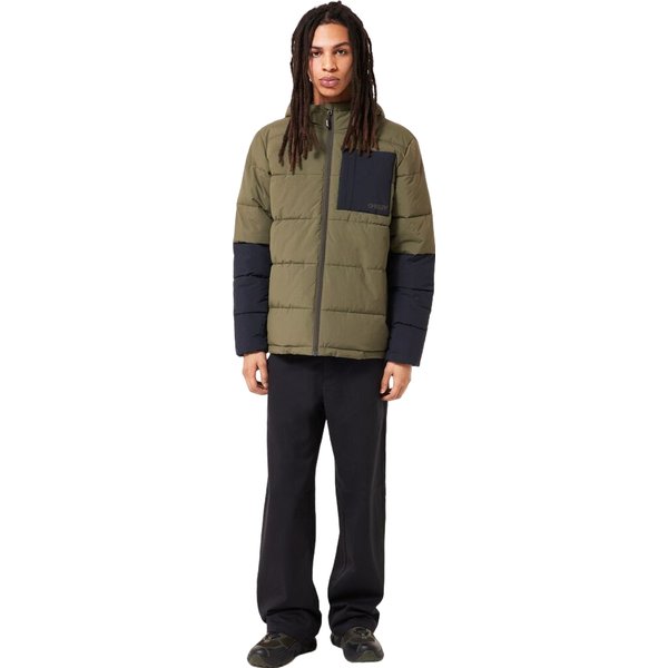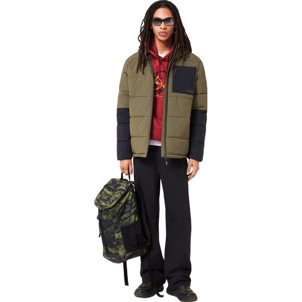 Kurtka męska Tahoe Puffy Oakley to doskonały wybór na chłodniejsze dni. Wykonana z wysokiej jakości materiałów, zewnętrzna warstwa tej kurtki została wykonana w 100% z nylonu pochodzącego z recyklingu. Izolacja syntetyczna zapewnia optymalne ciepło, chroniąc przed zimnem. Powłoka DWR sprawia, że zewnętrzna tkanina nie wchłania tak szybko wilgoci, co jest istotne podczas zmiennej pogody.