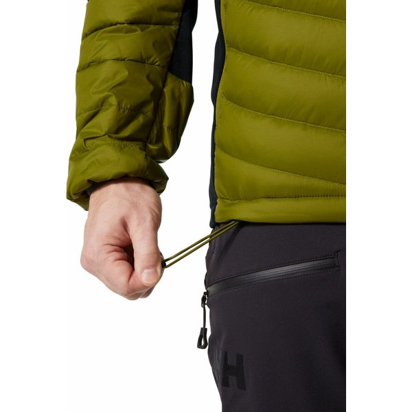 Hybrydowa kurtka puchowa Verglas Hooded Down Hybrid łączy w sobie super mocne cechy trzech materiałów, aby zapewnić doskonałą, ciepłą, oddychającą, izolowaną kurtkę. Marka Helly Hansen zastosowała połączenie odpowiedzialnie pozyskiwanego puchu, izolacji PrimaLoft® i tkaniny 20D Nano ripstop, z dużymi panelami oddychającego softshellu. Połączenie izolacji oraz tkanin tworzy miękki i wygodny hybrydowy izolator, który działa jako samodzielny element, ale też dobrze pasuje pod grubsze kurtki. Produkt ma warstwę hydrofobową wolną od PFC i jest wykonany zgodnie z certyfikowanym procesem produkcji tekstyliów Bluesign®. Jest to międzynarodowy standard, którego głównym celem jest ochrona środowiska oraz zdrowia w miejscu pracy.
