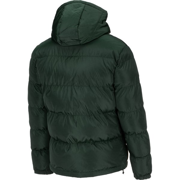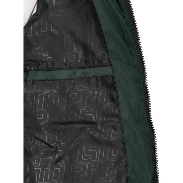 Kurtka puchowa męska Winter Adament Prosto to idealne rozwiązanie na zimowe dni, gwarantując maksymalny komfort i ciepło. Pikowana struktura oraz ocieplana warstwa skutecznie chronią przed chłodem, a wysoki kołnierz i kaptur dodatkowo zabezpieczają przed wiatrem. Model wyróżnia się klasycznym designem i praktycznym zapięciem na zamek błyskawiczny oraz guziki pod szyją. Dwie przednie kieszenie z patkami i wewnętrzna kieszeń zapewniają miejsce na niezbędne drobiazgi, a ściągacz w pasie umożliwia dopasowanie do sylwetki. Stylowy nadruk z logo na piersi i plecach podkreśla sportowy charakter kurtki, czyniąc ją modnym i funkcjonalnym wyborem.