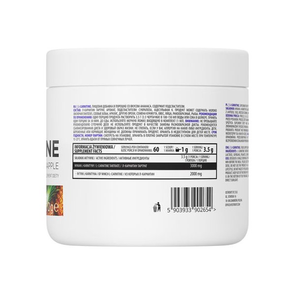 OstroVit Carnitine to wysokogatunkowy suplement diety, dostarczający 100% L-Karnityny.