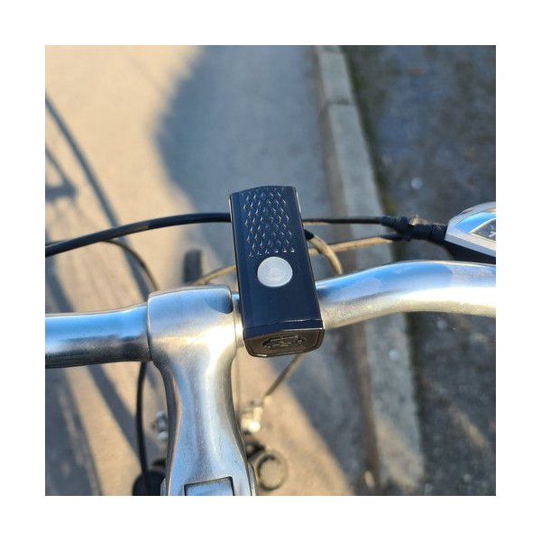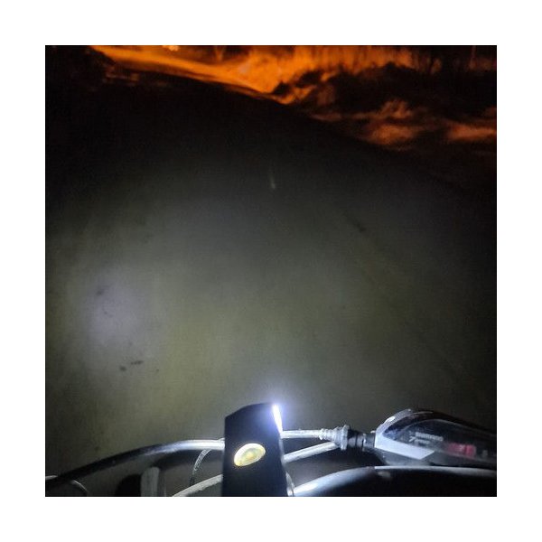 - trzy tryby oświetlenia przedniej lampki: mocne światło, stroboskop, słabe światło
