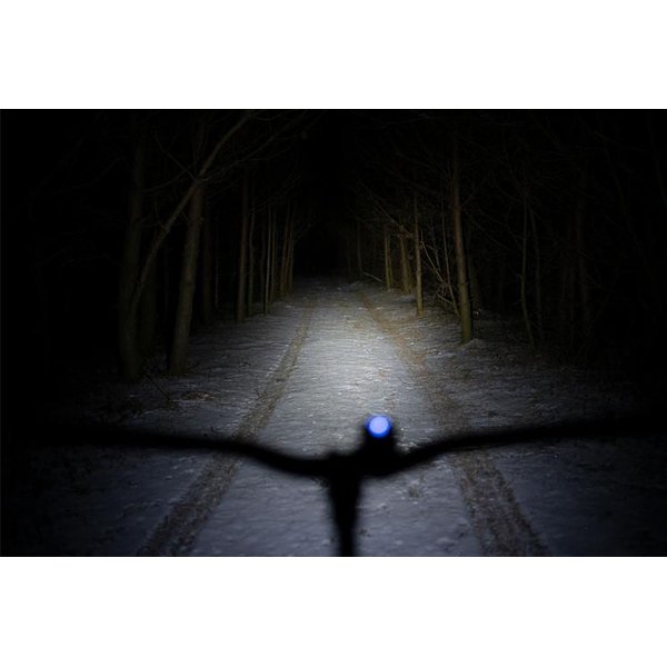 Dwie diody CREE XP-G2 LED o mocy 500 lumenów zapewniają szeroki kąt świecenia i daleki snop wiązki światła. Mocny akumulator litowo-polimerowy o pojemności 2000mAh (3,7V) ładuje się przez gniazdo USB-C, a poziom naładowania odczytasz z 4-diodowego wskaźnika. Czas ładowania jest uzależniony od źródła energii. Lampka posiada aż sześć trybów pracy: trzy stałe i trzy migające. Wodoszczelność klasy IPX4 zabezpiecza lampkę przed spryskiwaniem i zachlapaniami o natężeniu do 10 litrów na minutę, więc lekki deszcz nie spowoduje uszkodzeń. Lekka lampa waży zaledwie 126 gramów, więc nie obciąża kierownicy, ani nie utrudnia jazdy, a jej montaż jest łatwy dzięki zintegrowanemu gumowemu uchwytowi. Użycie wytrzymałych materiałów i solidna konstrukcja przekładają się na trwały model, który będzie Ci towarzyszył w trakcie wielu wycieczek.