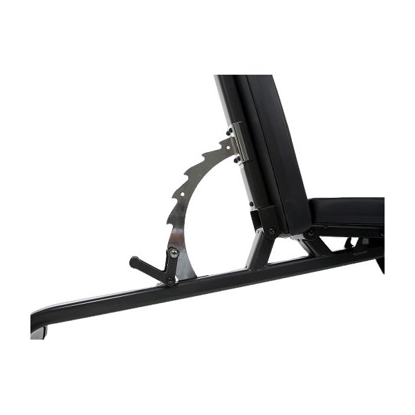 Szerokie siedzisko i oparcie gwarantują odpowiednie podparcie ciała podczas ćwiczeń, co jest kluczowe dla zachowania prawidłowej postawy i uniknięcia kontuzji. System quick grid umożliwia szybkie i łatwe dopasowanie ławki do indywidualnych potrzeb użytkownika. Regulowane oparcie, z możliwością ustawienia w pięciu różnych pozycjach, oraz siedzisko, które można konfigurować pod dwoma kątami, zapewniają optymalne warunki do wykonywania różnorodnych ćwiczeń. Mechanizm blokujący oparcie dodatkowo zwiększa bezpieczeństwo, umożliwiając stabilne ustawienie nawet podczas intensywnych sesji treningowych.