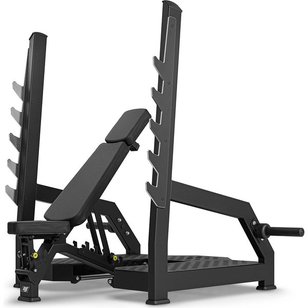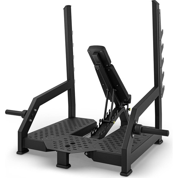 Ławka jest uniwersalna i pozwoli na przeprowadzenie treningu klatki piersiowej, barków, czy nóg. Stojaki wykonane zostały z grubej blachy, która zapewnia wytrzymałość i bezpieczne przeprowadzenie treningu. Zastosowany specjalny przegub łączy stojaki z ławką i umożliwia wygodne przeprowadzenie treningu. Ławka posiada możliwość regulacji siedziska, a także regulacje oparcia, co pozwala na dostosowanie do użytkownika i rodzaju wykonywanego ćwiczenia. Siedzisko posiada 3 pozycje do wyboru, a oparcie 8 pozycji od 0° do 80° oraz kąt ujemny -13°. Model ten posiada możliwość rozbudowy o tuleje na obciążenia olimpijskie.