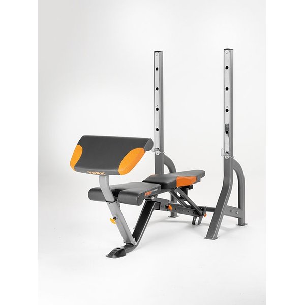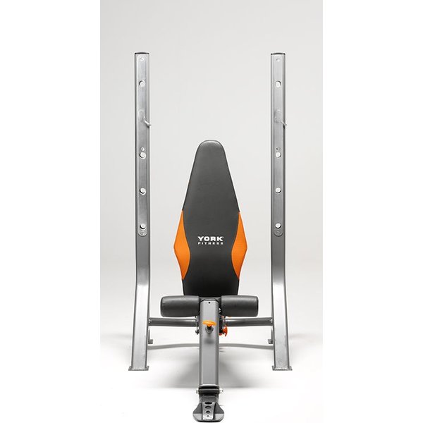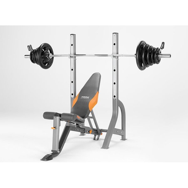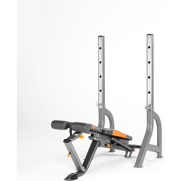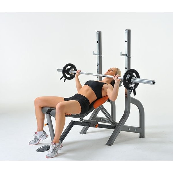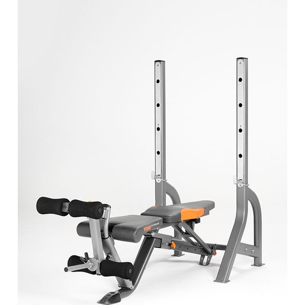 Ławka olimpijska z wąskim (60cm) rozstawem stojaka do zastosowania przy wykonywaniu szeregu ćwiczeń ze sztangą.