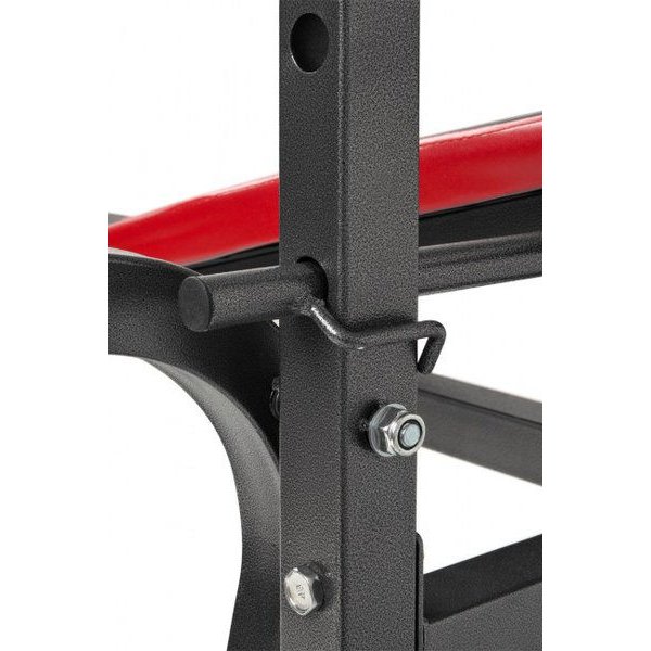 - 3 poziomów regulowania wysokości stojaków do sztangi (z dociskami)