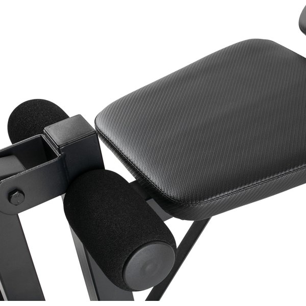 Dodatkowym atutem tej ławki jest poduszka na siedzisko i oparcie. Dzięki temu, trening będzie bardziej komfortowy i przyjemny. Ta regulowana ławka treningowa to także świetne rozwiązanie dla osób, które chcą trenować z sztangą. Możesz umieścić ją na stojakach i wykonywać różnorodne ćwiczenia siłowe.