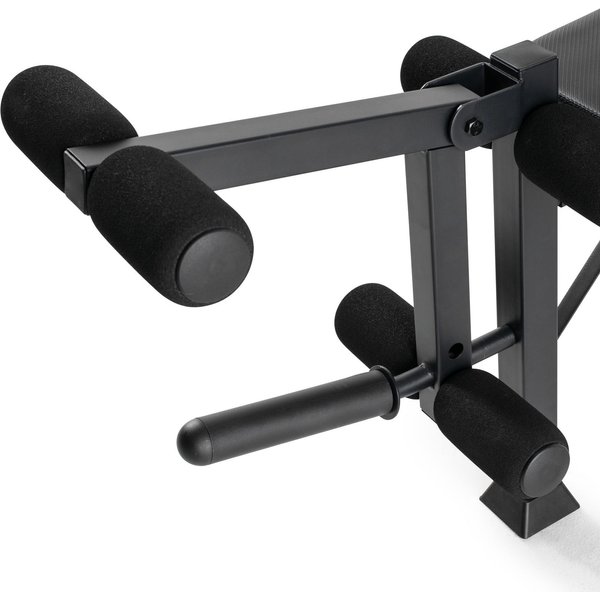 Ta ławka treningowa jest również wyposażona w stojaki na sztangę z zabezpieczeniami. Dzięki temu, możesz wykonywać ćwiczenia z obciążeniem, bez obaw o bezpieczeństwo. Stabilne podstawy zapewniają dodatkową stabilność i bezpieczeństwo podczas treningu. Warto podkreślić, że ta ławka umożliwia również wykonywanie ćwiczeń na nogi. Posiada specjalny uchwyt na nogi z poduszkami, który zapewnia wygodę i wsparcie podczas treningu nóg. Metalowa konstrukcja tej ławki gwarantuje trwałość i solidność. Możesz być pewien, że ten produkt będzie Ci służył przez wiele lat.