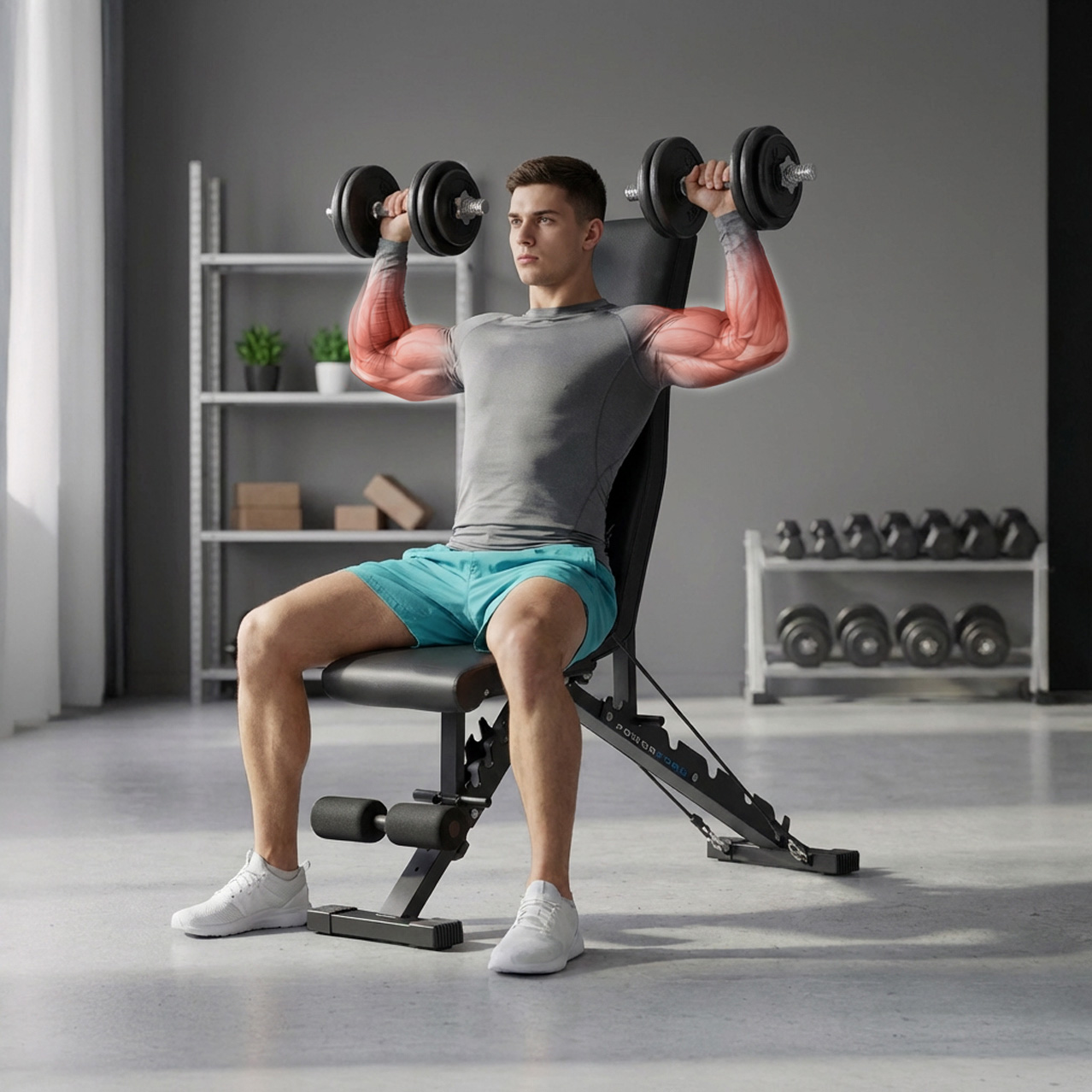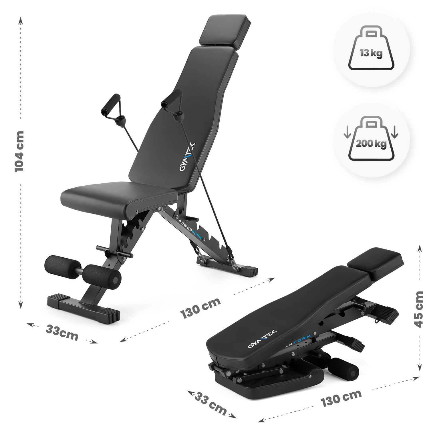 Wzmocniona konstrukcja z technologią PowerForm zapewnia stabilność nawet przy intensywnych ćwiczeniach, gwarantując bezpieczne warunki do wzmacniania mięśni w domowej siłowni. System regulacji oparcia i siedziska pozwala dopasować ławkę do różnych pozycji, co przekłada się na większą efektywność i komfort treningu.