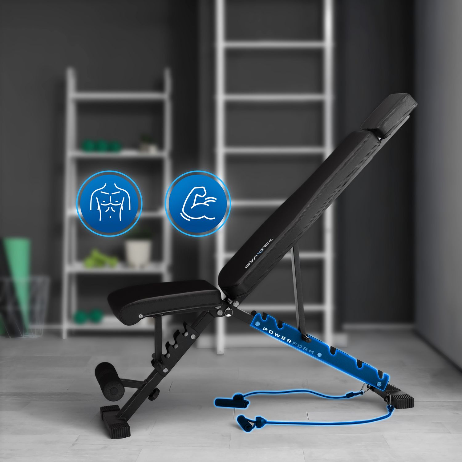- Trening całego ciała bez zmiany sprzętu: Regulacja kąta nachylenia oparcia i siedziska umożliwia wykonywanie różnorodnych ćwiczeń aktywujących wiele grup mięśniowych – w jednym miejscu, bez konieczności korzystania z dodatkowych urządzeń.