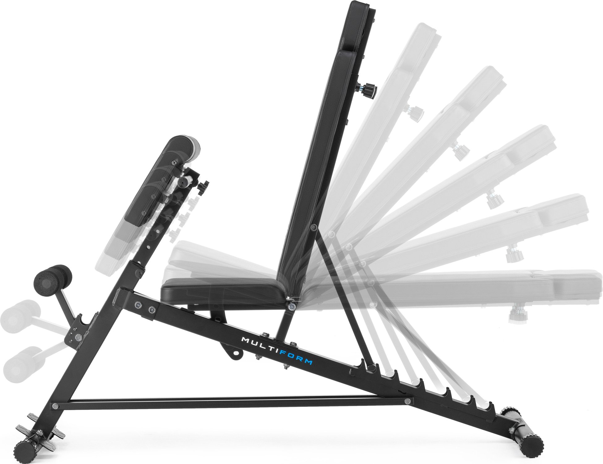 - Technologia MultiForm – stabilność i wszechstronność w jednym: Rozbudowana, solidna konstrukcja MultiForm z możliwością regulacji gwarantuje pełne bezpieczeństwo i komfort podczas treningu, umożliwiając wykonywanie wielu różnych ćwiczeń na jednej ławce.