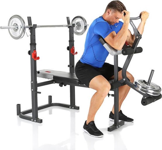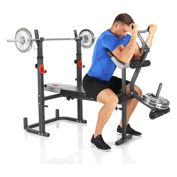 Dla osób pragnących rozwijać mięśnie ramion, modlitewnik jest znakomitym dodatkiem. Jego konstrukcja sprzyja intensywnemu treningowi bicepsów, umożliwiając jednocześnie kontrolowany przebieg ruchu. Maksymalne obciążenie modlitewnika to 60 kg, co daje szerokie możliwości intensyfikacji treningu. Kolejnym atutem tej ławki jest stacja do ćwiczeń nóg oraz motylki, które pozwalają na harmonijny rozwój dolnych partii ciała. Stacja do nóg wytrzymuje obciążenie do 50 kg, zaś motylki pozwalają na trening z obciążeniem do 30 kg na każde ramię. Taka wszechstronność sprawia, że ławka z powodzeniem zastępuje kilka urządzeń treningowych, pozwalając na kompleksowy rozwój sylwetki.