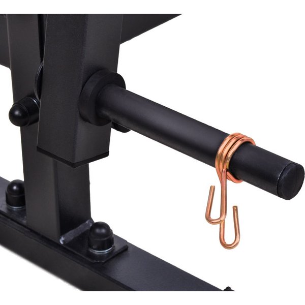 - z tyłu ławki zaprojektowaliśmy dwa uchwyty, w których będziesz mógł umieścić po skończonych ćwiczeniach wyciąg, przyrząd do nóg lub modlitewnik