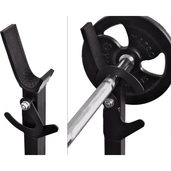 - specjalne haki blokujące pozwolą zabezpieczają gryf przed przechyleniem podczas nakładania obciążenia