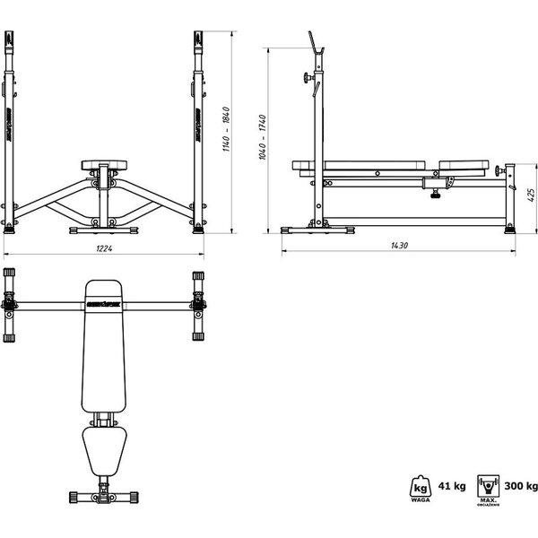 Szukasz urozmaicenia? Proszę bardzo - aż 10 kątów regulacji oparcia, z czego 9 jest dodatnich, i 8 poziomów regulacji stojaków na sztangę to gwarancja, że przy systematycznych treningach Twoja klatka piersiowa będzie wyrzeźbiona w krótkim czasie. Tak szerokie możliwości modyfikacji sprawiają, że angażujesz w wysiłek więcej mięśni, a tym samym sylwetka kształtuje się kompleksowo i szybko. Co ważne, model ten wytrzyma obciążenie dochodzące do 300kg, więc masz pewność, że podnosząc nawet duże ciężary w pełni bezpiecznie wypracujesz całą górną część ciała.