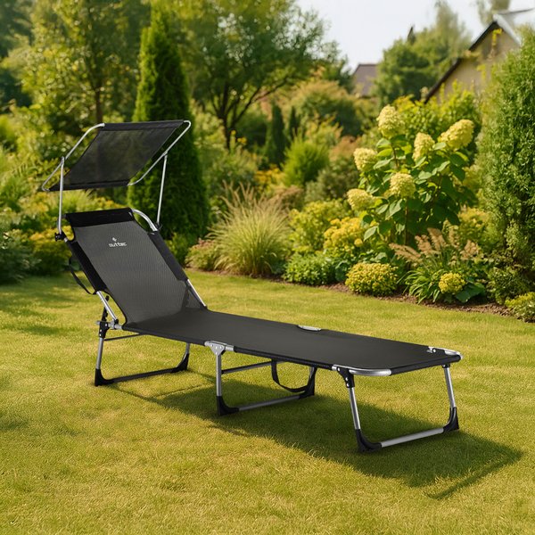 - Ochrona i komfort w jednym: Funkcjonalny, regulowany baldachim skutecznie chroni przed promieniowaniem UV, zapewniając komfortowy cień podczas wypoczynku. To idealne rozwiązanie na słoneczne dni – zarówno w ogrodzie, jak i na plaży.