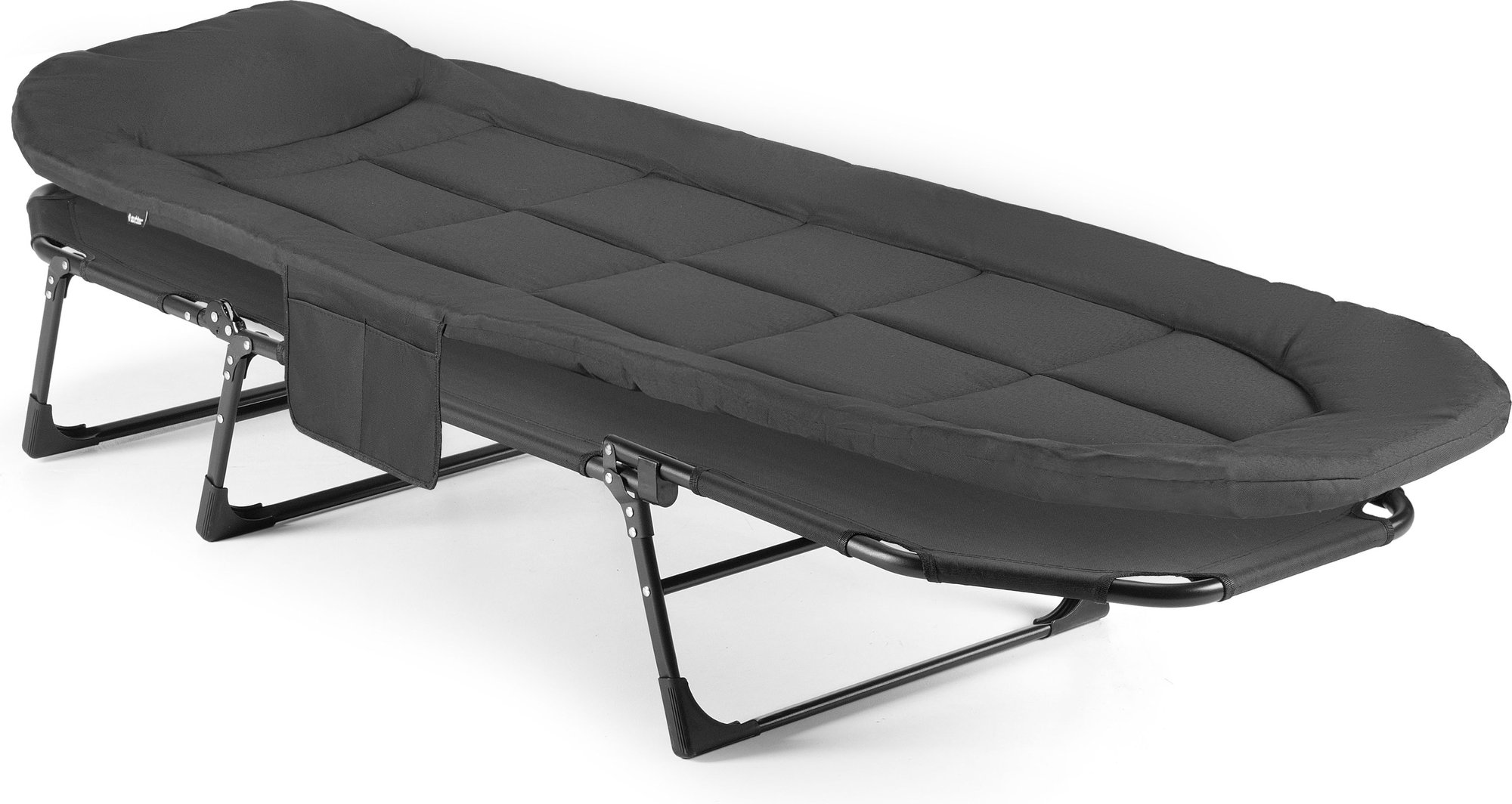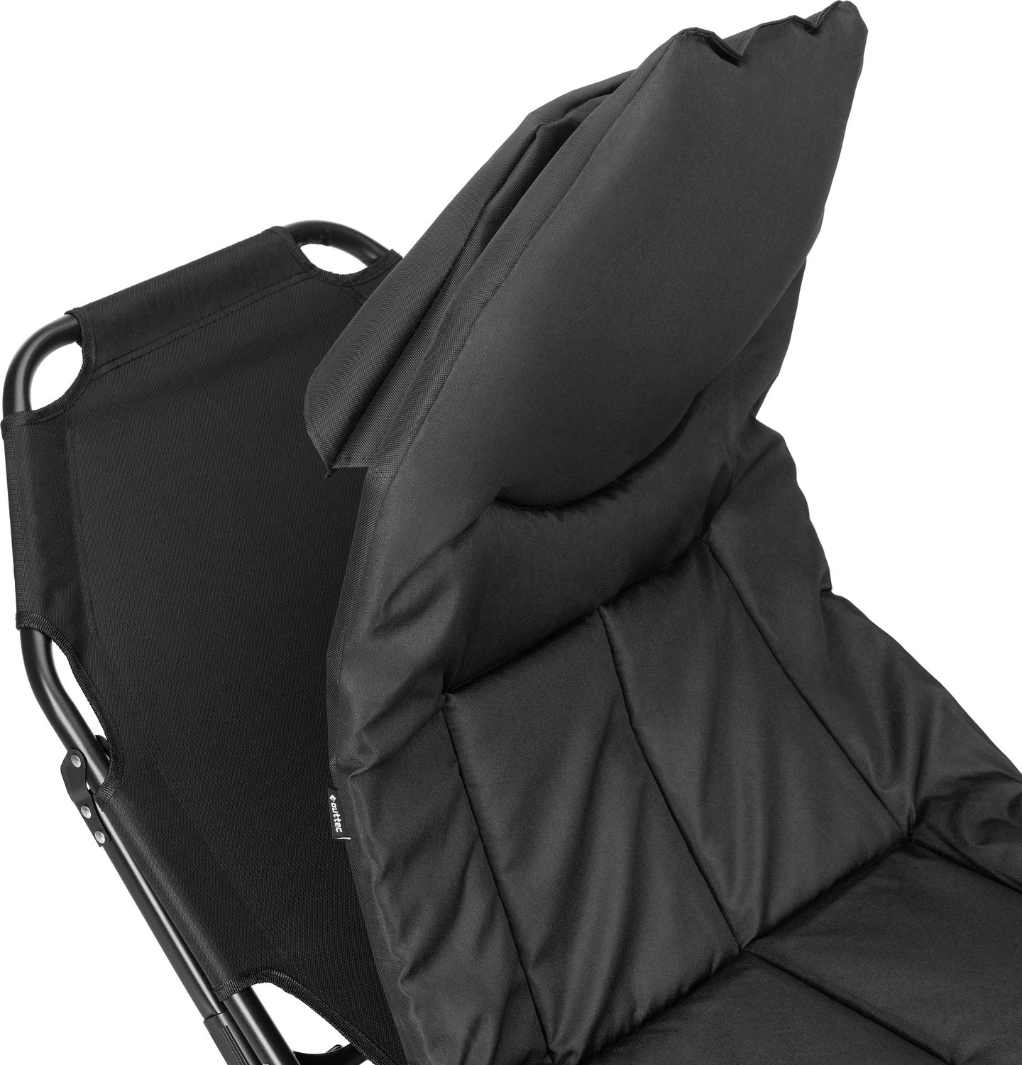Siedzisko wypełnione miękką pianką zapewnia wygodę podczas dłuższego odpoczynku. Dodatkowo 6-stopniowa regulacja oparcia umożliwia precyzyjne dostosowanie kąta nachylenia – od pozycji leżącej idealnej do opalania, aż po bardziej pionową do komfortowego czytania lub relaksu w cieniu.
